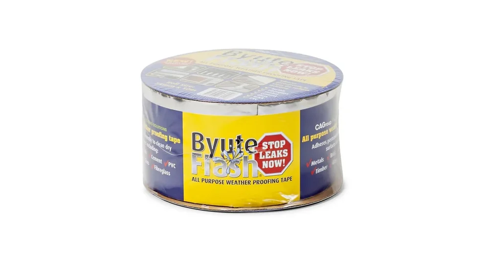 Consolidated alloys byute flash flashing tape aluminium foil coated with thick rubber butyl adhesive used for weather sealing joints and seams.