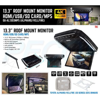 Pioneer carrozzeria 13 3 tvm fw1300 b roof monitor on toyota vellfire 2018 etoni car audio accessories.